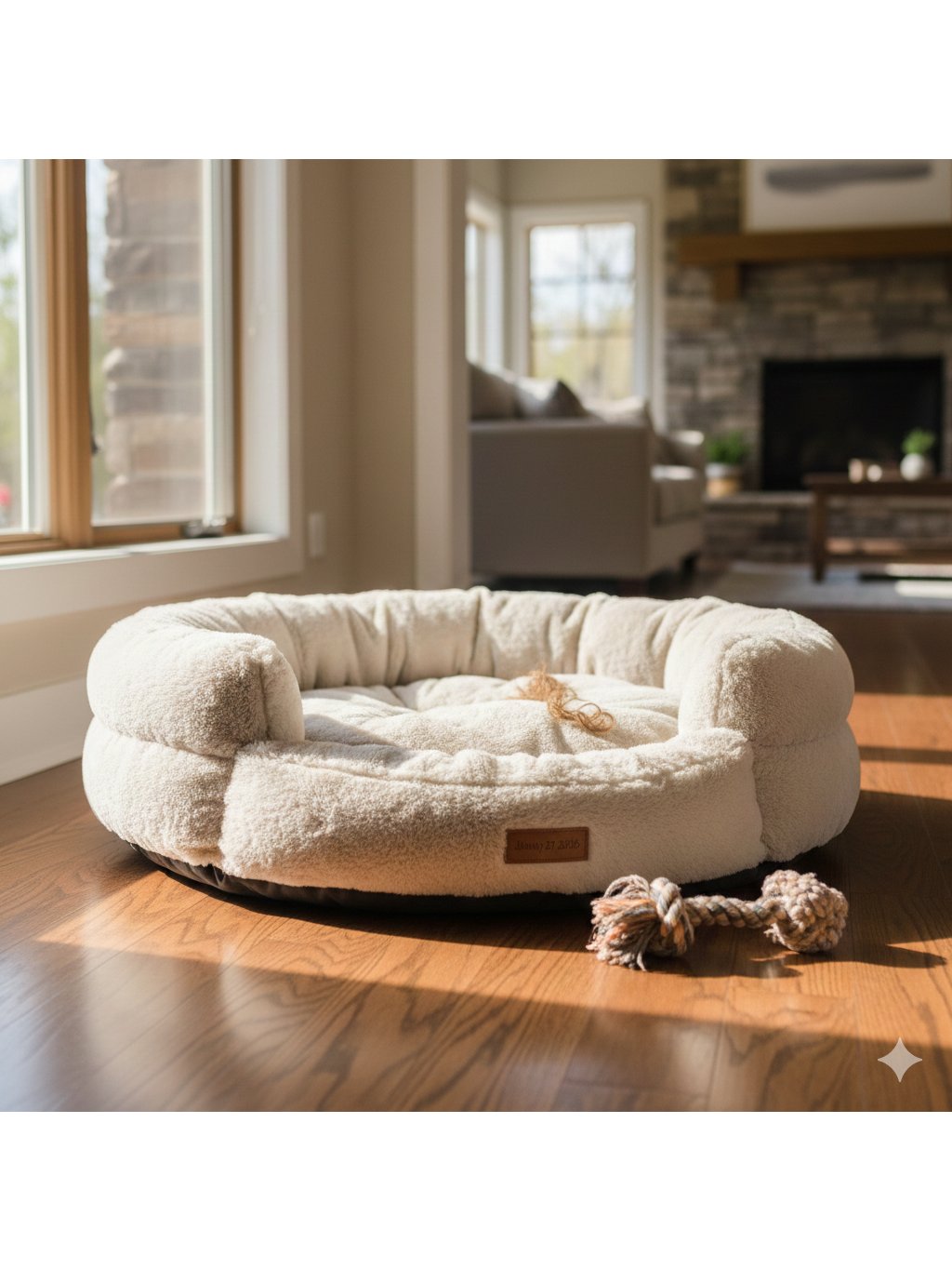 Design: Elegantní krémová barva s vkusným koženým detailem, který dodává pelíšku luxusní vzhled.